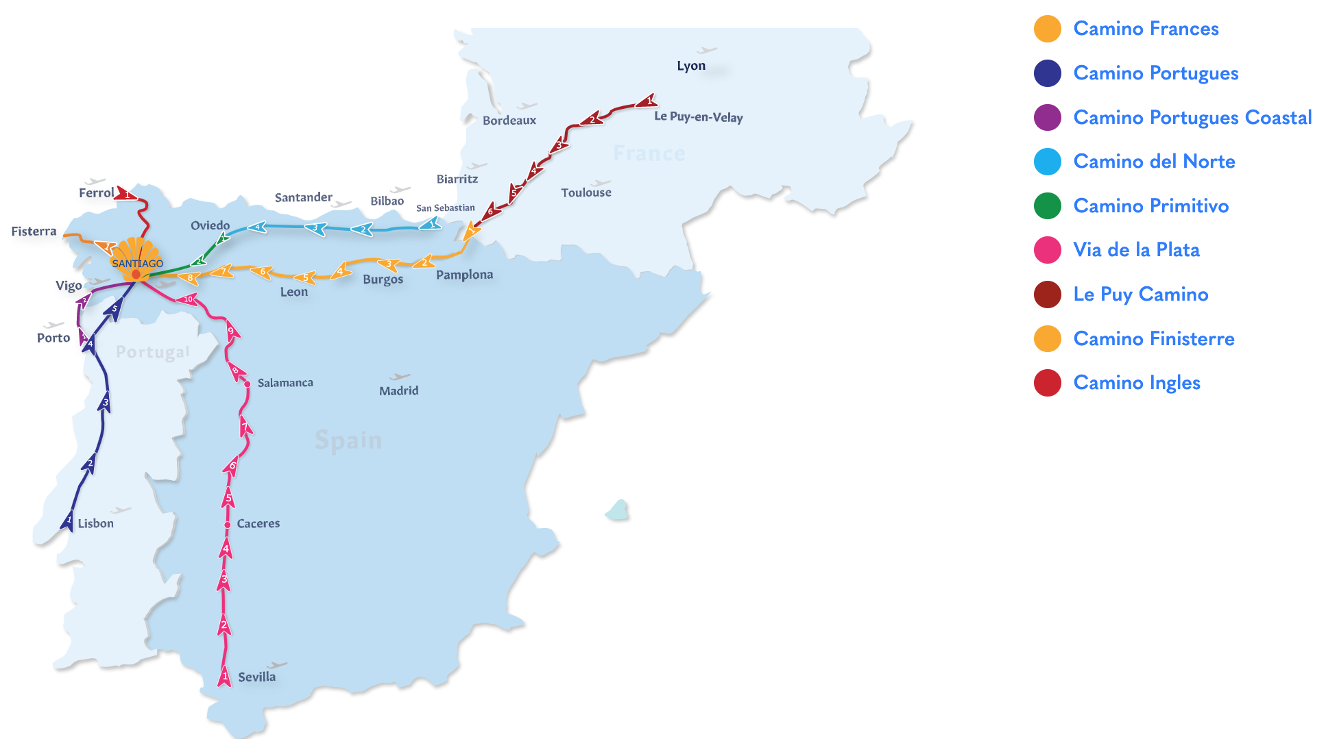 일단 산티아고를 향해 가는 길은 우리의 생각보다 훨씬 많아요. 그중 가장 많은 사람들이 걷고, 그만큼 많이 알려진 길은 프랑스길(Camino Frances, French Way)이에요.