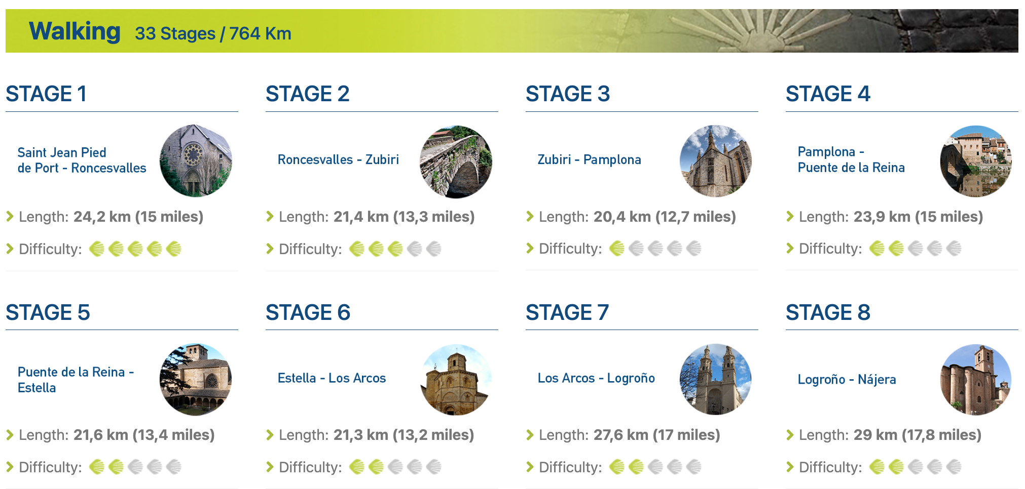 한 순례길 투어 사이트에서 33일 기준으로 짜본 일정이 있으니 참고하셔도 좋을 것 같아요.